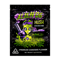Level up your packaging with our 1G exotic design mylar bags featuring the 'Alien OG Hush' artwork - brand-forward presentation, resealable, smell proof, and child resistant for compliant canabis packaging, long-term storage performance. These heat sealable, moisture proof pouches keep product potent and shelf-ready, and are compatible with vacuum sealing for long-term storage. A favorite for dispensary packaging and wholesale bulk orders. Case includes 100; ships fast nationwide.