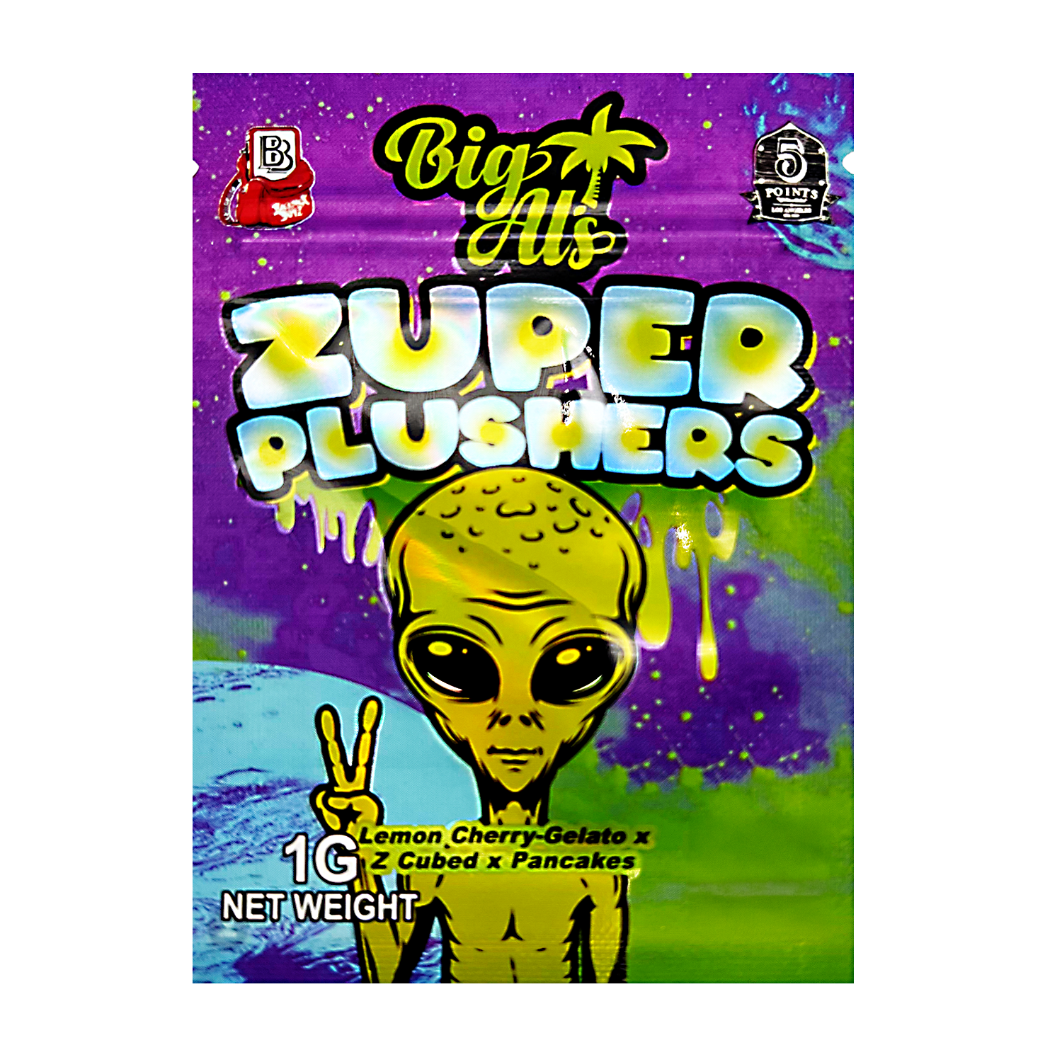 The Big Als Zuper Plushers edition features a clean, vibrant exotic design that brings instant recognition to your packaging lineup. Each 1-gram mylar bag includes a secure zipper closure and heat-sealable top for extended freshness. These exotic mylar bags combine Durable protection with bold color and collectible style.