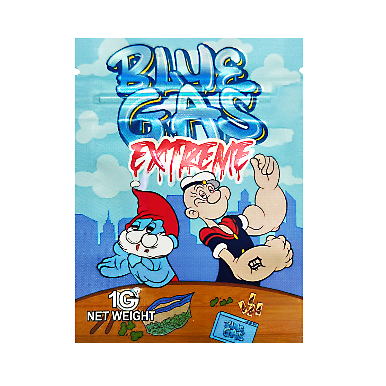 The Blue Gas Extreme edition features a clean, vibrant exotic design that brings instant recognition to your packaging lineup. Each 1-gram mylar bag includes a secure zipper closure and heat-sealable top for extended freshness. These exotic mylar bags combine Durable protection with bold color and collectible style.