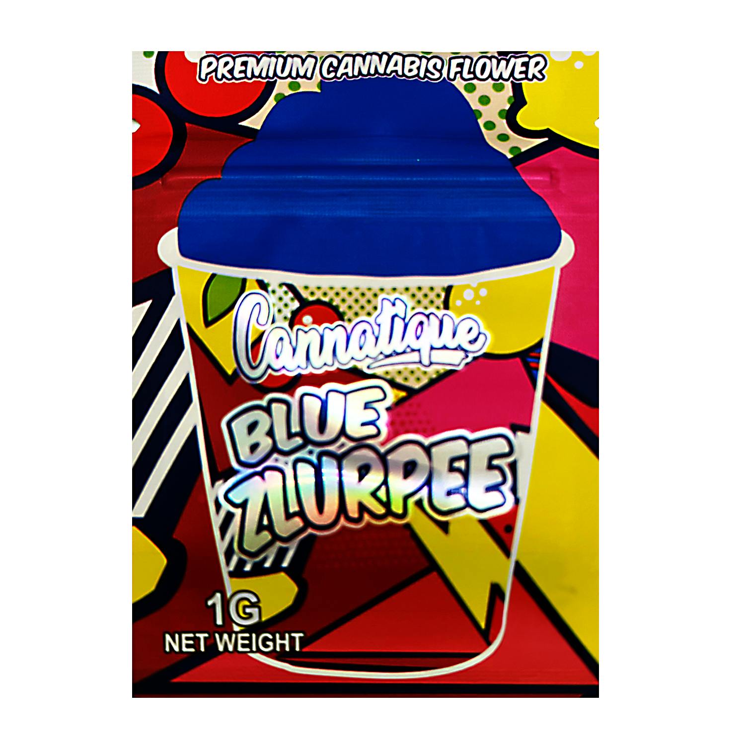 The Cannatique Blue Zlurpee edition features a clean, vibrant exotic design that brings instant recognition to your packaging lineup. Each 1-gram mylar bag includes a secure zipper closure and heat-sealable top for extended freshness. These exotic mylar bags combine Durable protection with bold color and collectible style.
