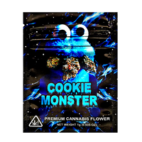 Level up your packaging with our 1G exotic design mylar bags featuring the 'Cookie Monster' artwork - brand-forward presentation, resealable, smell proof, and child resistant for compliant canabis packaging, long-term storage performance. These heat sealable, moisture proof pouches keep product potent and shelf-ready, and are compatible with vacuum sealing for long-term storage. A favorite for dispensary packaging and wholesale bulk orders. Case includes 100; ships fast nationwide.