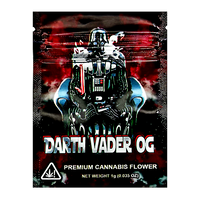 Stand out on the shelf with the 'Darth Vader OG' 1G exotic mylar bag, consistent pouch quality. Built with a moisture resistant barrier and odor-control lining, these resealable, heat sealable, child resistant herb bags protect flower, edibles, and concentrates. Compatible with vacuum sealers and ideal for compliant dispensary packaging and wholesale orders. Case of 100; quick nationwide shipping.