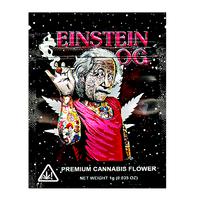 The 'Einstein OG' 1G exotic design mylar bag delivers premium freshness: smell proof, resealable, heat sealable, and child resistant, smooth surface for custom labels. Printed in vivid, high-resolution graphics on durable barrier film, these herb mylar bags keep flower, gummies, and concentrates store-ready. Vacuum seal compatible and optimized for dispensary packaging and wholesale distribution. 100 bags per case, available with nationwide delivery.