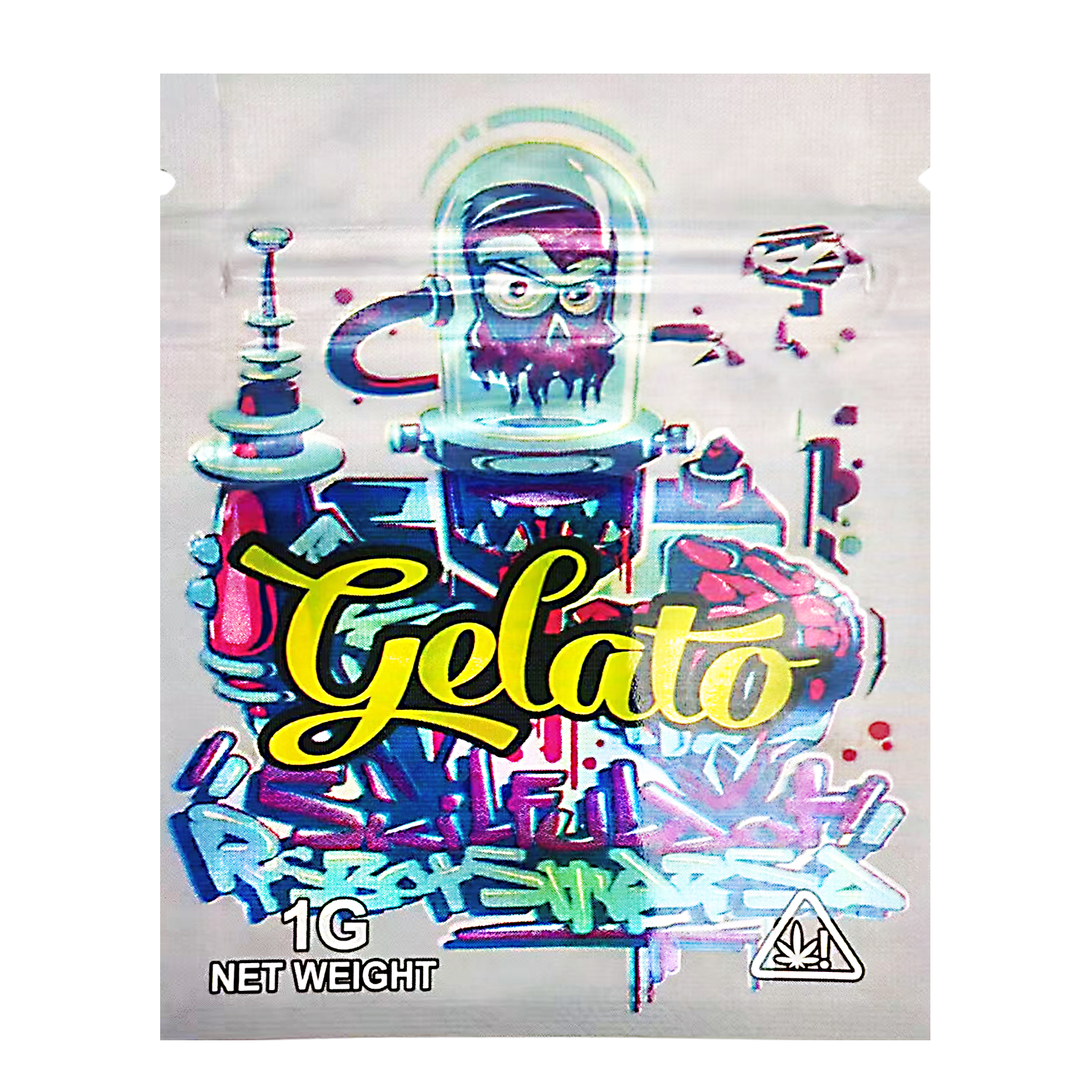 The Gelato Robot Swarza edition features a clean, vibrant exotic design that brings instant recognition to your packaging lineup. Each 1-gram mylar bag includes a secure zipper closure and heat-sealable top for extended freshness. These exotic mylar bags combine premium protection with bold color and collectible style.