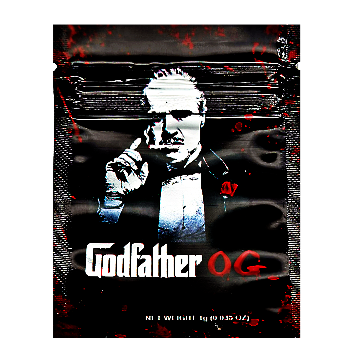 The 'Godfather OG' 1G exotic design mylar bag delivers Durable freshness: smell proof, resealable, heat sealable, and child resistant, smooth surface for custom labels. Printed in vivid, high-resolution graphics on durable barrier film, these herb mylar bags keep flower, gummies, and concentrates store-ready. Vacuum seal compatible and optimized for dispensary packaging and wholesale distribution. 100 bags per case, available with nationwide delivery.