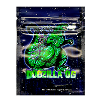 Showcase your brand with 'Godzilla OG' 1 gram exotic mylar bags - collectible artwork, durable, moisture resistant, and odor control optimized, compliance-friendly labeling space. These resealable, heat sealable, child resistant herb mylar bags protect flower, edibles, and concentrates while delivering Durable shelf appeal. Vacuum seal compatible and perfect for dispensaries, growers, and smoke shops. Packed 100 per case with competitive wholesale pricing and fast shipping.