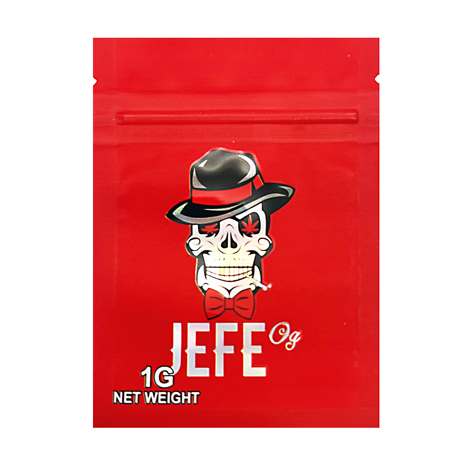 Upgrade your packaging lineup with the 1g Exotic Mylar Bag Jefe OG, a Durable-quality smell proof, resealable, and heat sealable bag designed for freshness and standout appeal. Built from durable, multi-layer barrier film, these small mylar bags protect contents from air, moisture, and odor - perfect for brands focused on presentation and long-lasting quality.