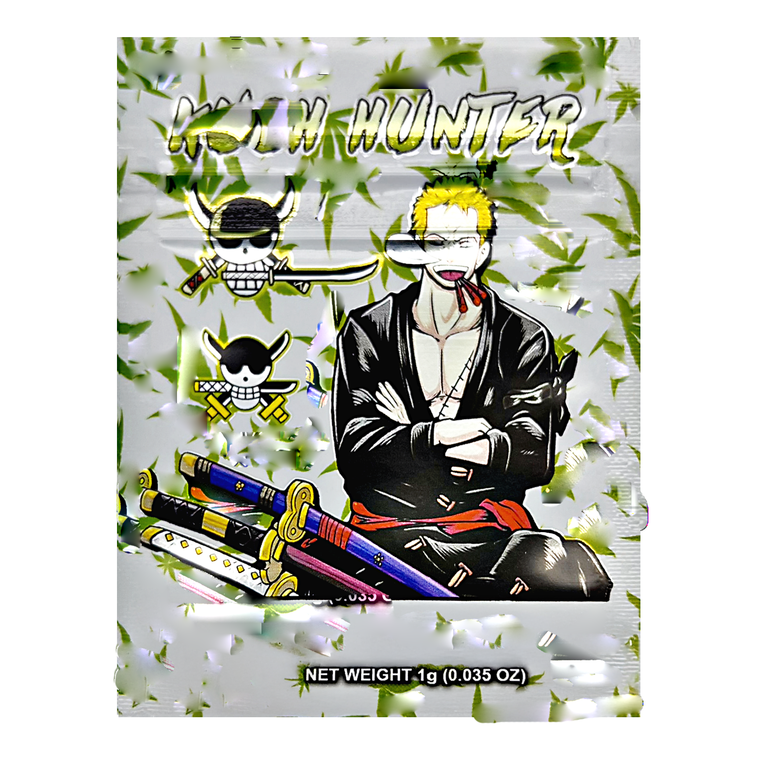 Level up your packaging with our 1G exotic design mylar bags featuring the 'Kush Hunter' artwork - brand-forward presentation, resealable, smell proof, and child resistant for compliant canabis packaging, long-term storage performance. These heat sealable, moisture proof pouches keep product potent and shelf-ready, and are compatible with vacuum sealing for long-term storage. A favorite for dispensary packaging and wholesale bulk orders. Case includes 100; ships fast nationwide.