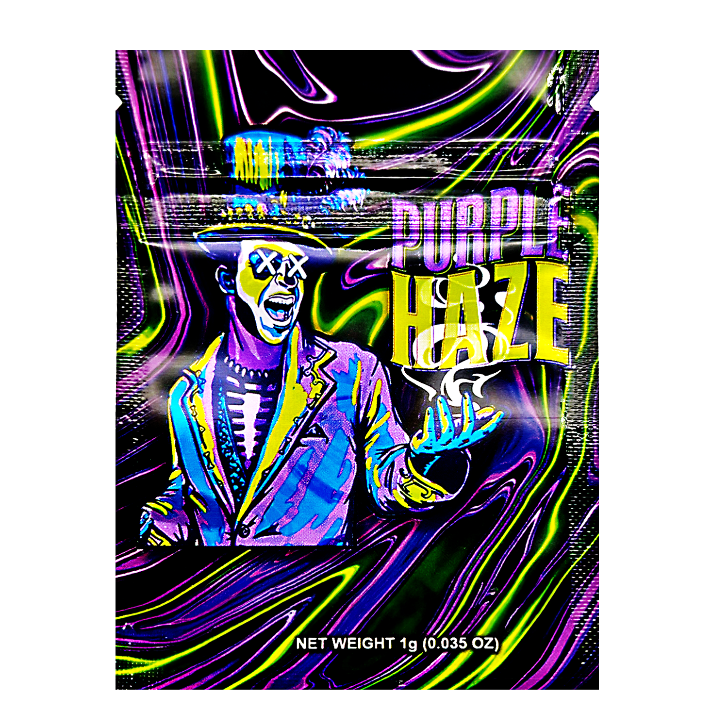 Level up your packaging with our 1G exotic design mylar bags featuring the 'Purple Haze Voodoo' artwork - brand-forward presentation, resealable, smell proof, and child resistant for compliant canabis packaging, long-term storage performance. These heat sealable, moisture proof pouches keep product potent and shelf-ready, and are compatible with vacuum sealing for long-term storage. A favorite for dispensary packaging and wholesale bulk orders. Case includes 100; ships fast nationwide.