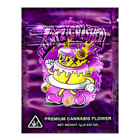 The 'Runtz Crasher' 1G exotic design mylar bag delivers premium freshness: smell proof, resealable, heat sealable, and child resistant, smooth surface for custom labels. Printed in vivid, high-resolution graphics on durable barrier film, these herb mylar bags keep flower, gummies, and concentrates store-ready. Vacuum seal compatible and optimized for dispensary packaging and wholesale distribution. 100 bags per case, available with nationwide delivery.