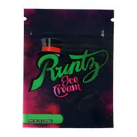 Stand out on the shelf with the 'Runtz Ice Cream' 1G exotic mylar bag, consistent pouch quality. Built with a moisture resistant barrier and odor-control lining, these resealable, heat sealable, child resistant herb bags protect flower, edibles, and concentrates. Compatible with vacuum sealers and ideal for compliant dispensary packaging and wholesale orders. Case of 100; quick nationwide shipping.