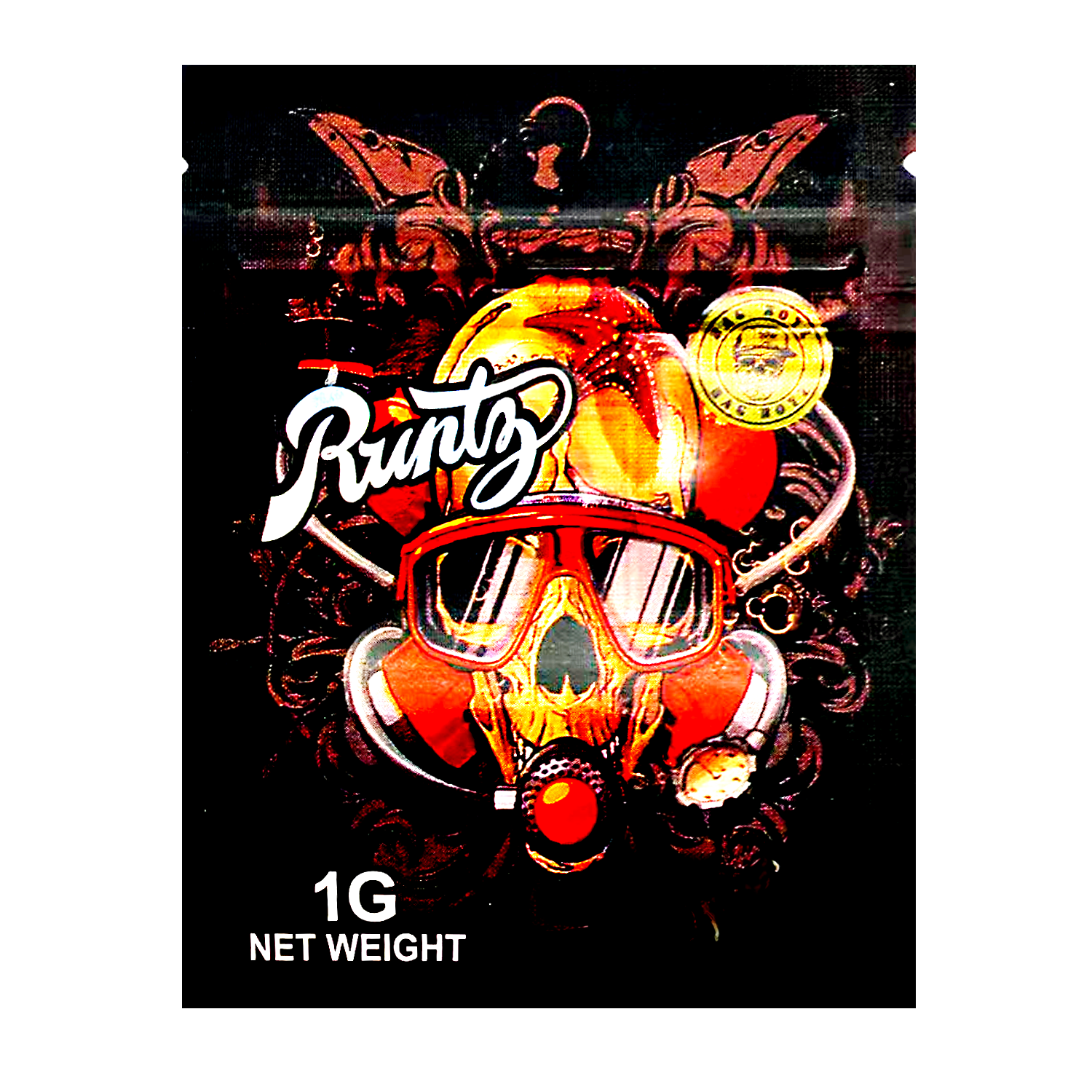 The Rutnz Skull Mask edition features a clean, vibrant exotic design that brings instant recognition to your packaging lineup. Each 1-gram mylar bag includes a secure zipper closure and heat-sealable top for extended freshness. These exotic mylar bags combine Durable protection with bold color and collectible style.