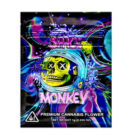 Level up your packaging with our 1G exotic design mylar bags featuring the 'Space Monkey' artwork - brand-forward presentation, resealable, smell proof, and child resistant for compliant canabis packaging, long-term storage performance. These heat sealable, moisture proof pouches keep product potent and shelf-ready, and are compatible with vacuum sealing for long-term storage. A favorite for dispensary packaging and wholesale bulk orders. Case includes 100; ships fast nationwide.