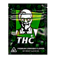 The 'THC' 1G exotic design mylar bag delivers premium freshness: smell proof, resealable, heat sealable, and child resistant, smooth surface for custom labels. Printed in vivid, high-resolution graphics on durable barrier film, these herb mylar bags keep flower, gummies, and concentrates store-ready. Vacuum seal compatible and optimized for dispensary packaging and wholesale distribution. 100 bags per case, available with nationwide delivery.