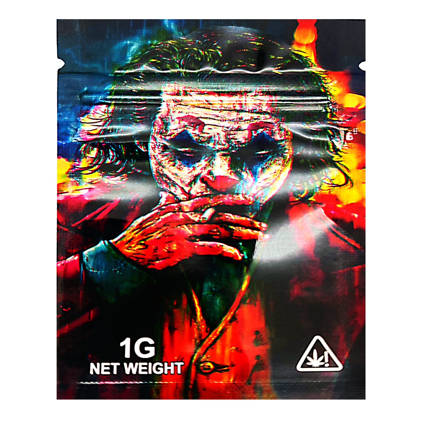 The The Joker Smoking edition features a clean, vibrant exotic design that brings instant recognition to your packaging lineup. Each 1-gram mylar bag includes a secure zipper closure and heat-sealable top for extended freshness. These exotic mylar bags combine premium protection with bold color and collectible style.