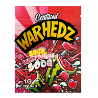 The Warhedz Sour Waternelon Soda edition features a clean, vibrant exotic design that brings instant recognition to your packaging lineup. Each 1-gram mylar bag includes a secure zipper closure and heat-sealable top for extended freshness. These exotic mylar bags combine Durable protection with bold color and collectible style.