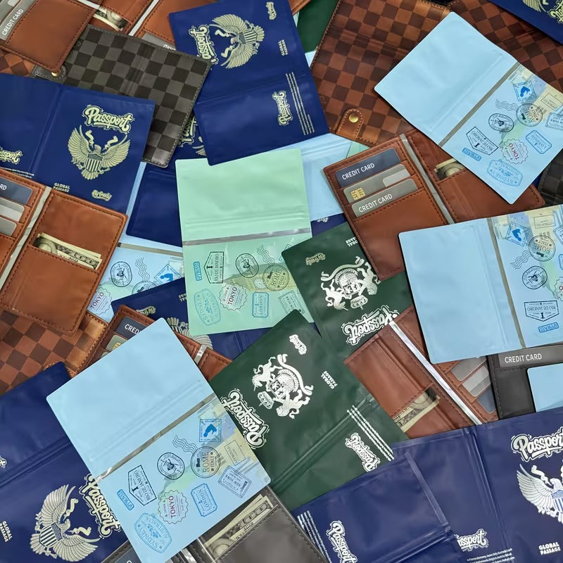 The travel-inspired passport and wallet designs deliver a lifestyle aesthetic customers love. Each bag features a resealable zip closure.