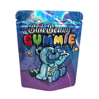 Stock up on Blue Beary Gummie 3.5 gram exotic design mylar bags - premium smell proof, moisture lock, and heat seal capability. Ideal for premium eighth ounce herb, delivering secure storage and meeting state packaging laws. Popular with herb brands, growers, and distributors - available in bulk with fast nationwide shipping and competitive wholesale pricing.
