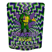 Buy high-quality 3.5g exotic herb bags - odor proof with resealable design to lock in aroma. Designed for eighth ounce herb flower in dispensaries, wholesale, and retail packaging. The Donatello Kush artwork delivers bold shelf appeal Wholesale bulk orders welcome with speedy nationwide delivery.