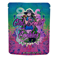 Shop 3.5 gram exotic herb mylar bags - smell proof and vacuum seal compatible to keep flower fresh longer. Designed for eighth ounce herb flower in dispensaries, wholesale, and retail packaging. Sporting the vibrant Girl Sour Cookies style for maximum visibility Wholesale bulk orders welcome with speedy nationwide delivery.