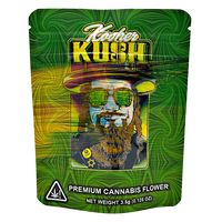 Buy Kosher Kush 3.5 gram exotic herb mylar bags - smell proof, moisture proof, and heat sealable for maximum freshness and odor control. Built for eighth ounce herb storage, offering compliance, product safety, and standout visual appeal. Designed for professional herb packaging needs - bulk supply with quick delivery and great prices.
