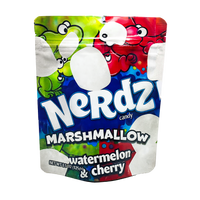 Buy Nerdz Marshmallow Watermelon & Cherry 3.5 gram exotic herb mylar bags - smell proof, moisture proof, and heat sealable for maximum freshness and odor control. Perfect for eighth ounce herb flower, these child resistant pouches meet compliance standards while keeping your product secure and potent. A go-to choice for premium herb packaging - available for wholesale with rapid nationwide delivery.