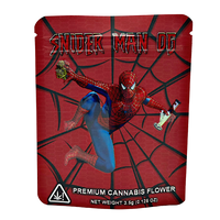 Grab Snider Man OG 3.5g exotic mylar bags - built to keep herb fresh with smell proof, moisture resistant, and heat sealable features. Sized for eighth ounce flower, these premium pouches offer legal compliance, freshness retention, and professional shelf appeal. Designed for professional herb packaging needs - bulk supply with quick delivery and great prices.