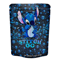 Stock up on Stitch OG 3.5 gram exotic design mylar bags - Durable smell proof, moisture lock, and heat seal capability. Designed for dispensary eighth ounce packaging, these bags protect buds while showcasing bold branding. Popular with herb brands, growers, and distributors - available in bulk with fast nationwide shipping and competitive wholesale pricing.