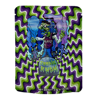 Shop 3.5 gram exotic herb mylar bags - odor proof with resealable design to lock in aroma. Perfect for dispensary 1/8 oz flower, bulk herb distribution, and retail display. Showcasing the bold and unique Zombie Kush design Offered at competitive wholesale rates with quick shipping across the country.