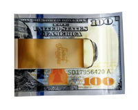 Grab Hundred Dollar Bill Clip 3.5g custom-shaped mylar bags - odor proof, moisture blocking, heat sealable, and child safe to keep contents fresh and secure. Ideal for storing eighth ounce herb flower, edibles, or concentrates, with a creative shape that draws customer attention instantly. Built for compliance and long-lasting freshness, these bags ship fast nationwide and work great for wholesale to herb businesses.