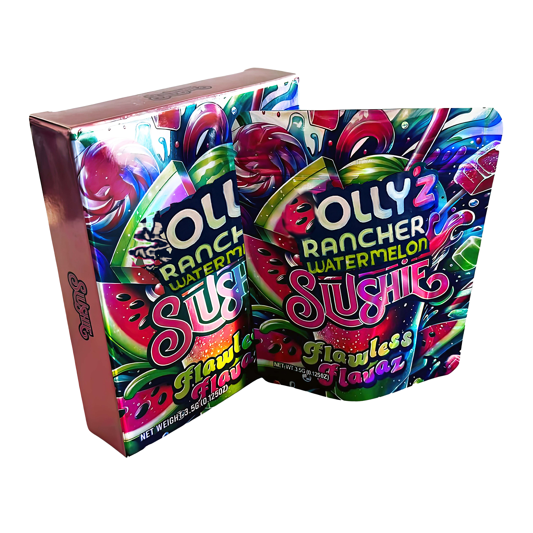 3.5g Mylar Bag with Box - Hollyz Rancher Watermelon Siushie (25 Bags+25Boxes)