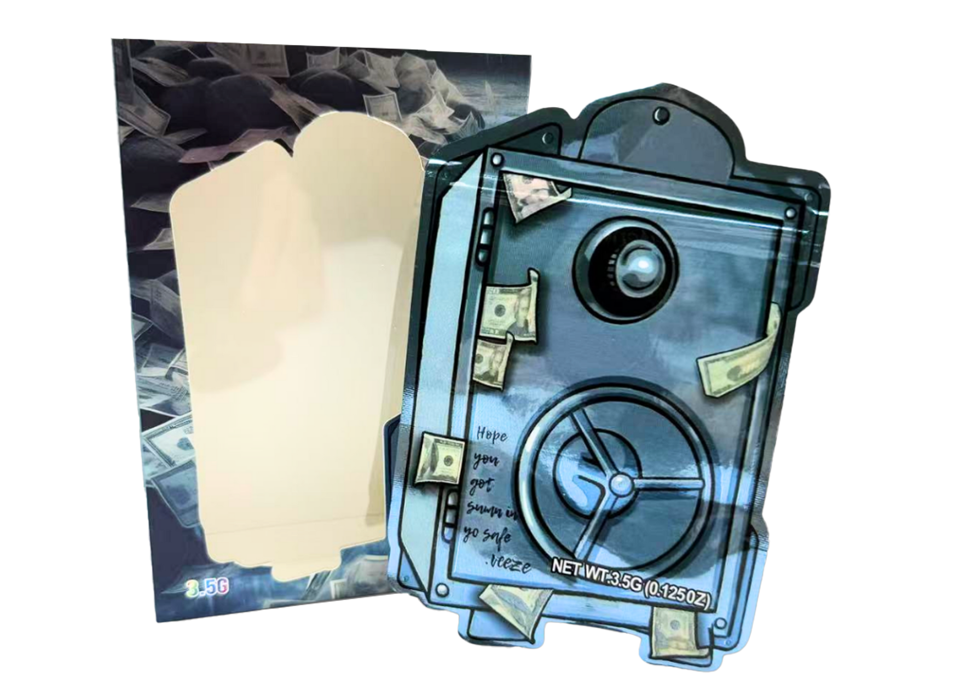 The Cash Safe edition features a clean, vibrant design that brings instant recognition to your packaging lineup. Each combo pack includes a resealable mylar bag and a matching window display box, combining Durable protection with eye-catching presentation and collectible appeal.