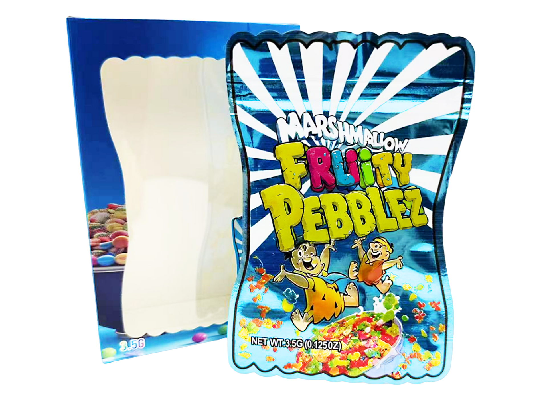 The Marshmallow Fruity Pebbles edition features a clean, vibrant design that brings instant recognition to your packaging lineup. Each combo pack includes a resealable mylar bag and a matching window display box, combining Durable protection with eye-catching presentation and collectible appeal.