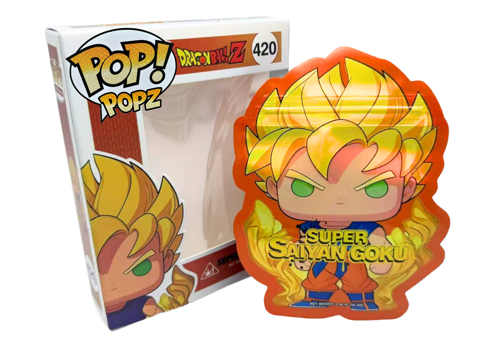 The POP Goku 420 edition features a clean, vibrant design that brings instant recognition to your packaging lineup. Each combo pack includes a resealable mylar bag and a matching window display box, combining premium protection with eye-catching presentation and collectible appeal.