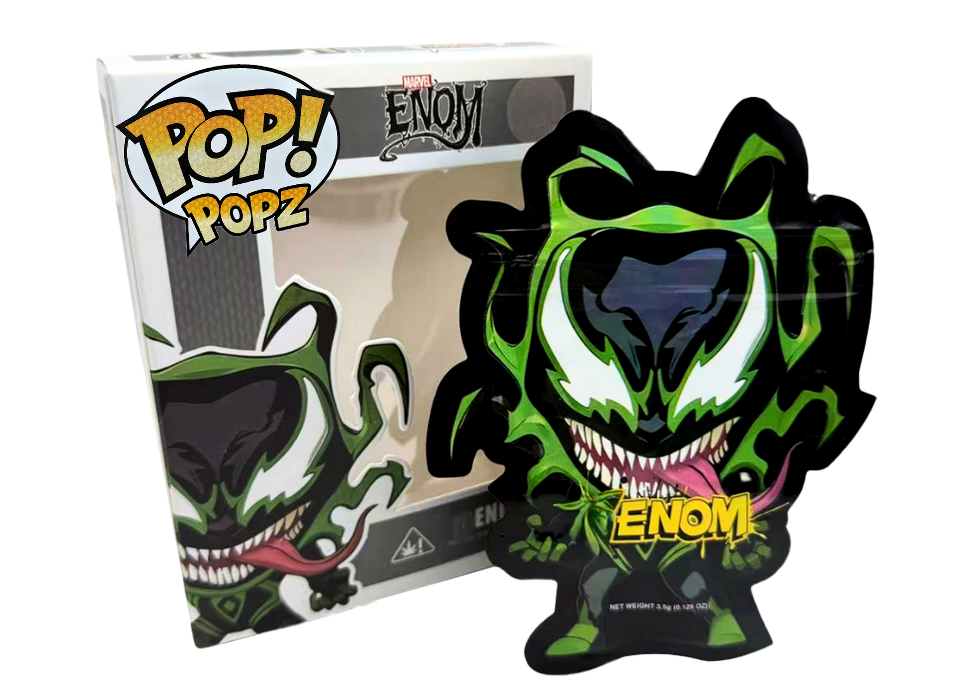 The POP Venom 420 edition features a clean, vibrant design that brings instant recognition to your packaging lineup. Each combo pack includes a resealable mylar bag and a matching window display box, combining Durable protection with eye-catching presentation and collectible appeal.