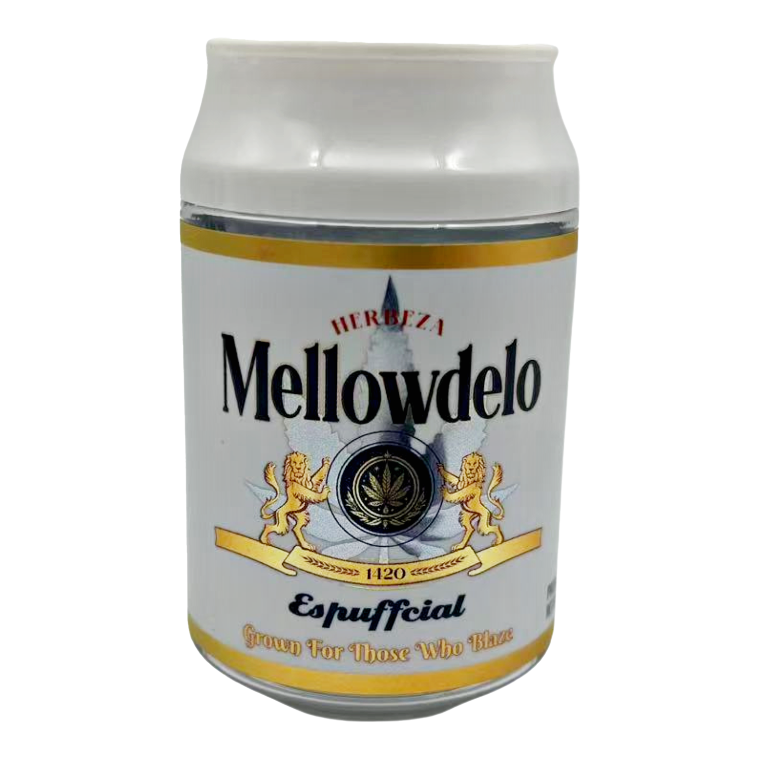 Buy 3.5 gram soda can jars like the 'Mellowdelo' design - smell proof, child resistant, and airtight for Durable herb storage. Featuring a resealable pop-top lid, this jar merges fun soda can looks with practical storage performance. Ideal for retail displays, product drops, or promotional giveaways. Airtight seal locks in freshness and prevents unwanted odors from escaping. Lightweight yet durable plastic construction ensures safe handling and storage. Perfect for dispensaries, growers, and wholesale herb packaging suppliers. Order now to bring a playful twist to your herb packaging lineup.