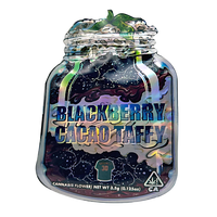 Get Blackberry Cacao Taffy 3.5 gram designer shaped mylar bags - odor barrier, moisture protection, heat sealable, and child resistant to protect your product. Perfect for eighth ounce herb flower, edibles, or concentrates, these unique shaped bags help your brand stand out on dispensary shelves. Vacuum seal compatible and compliant with canabis packaging regulations - perfect for wholesale orders to dispensaries, growers, and smoke shops. Ships fast nationwide.