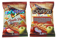 Stock up on High Tolerance Doritos Apple Pie 3.5 gram shaped herb bags - premium smell control, moisture resistance, heat seal capability, and child resistant features included. Designed for eighth ounce herb, edibles, or concentrates, each bag features a distinctive shape that boosts branding and visual appeal. Meeting canabis packaging compliance, these vacuum-sealable bags are perfect for wholesale distribution. Available for quick nationwide shipping.