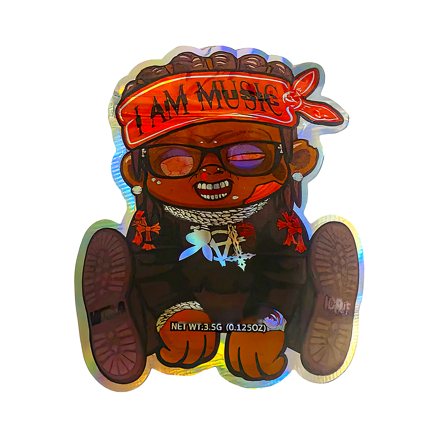 Upgrade your storage packaging with the 3.5g Shaped Mylar Storage Bag Packaging - I Am Music premium-quality, smell proof, resealable, and collectible exotic design appeal crafted for product presentation and freshness. Each 3.5g Shaped Mylar Bag features high-grade Mylar Packaging Bags material with a die-cut shape that enhances visibility for product branding appeal.