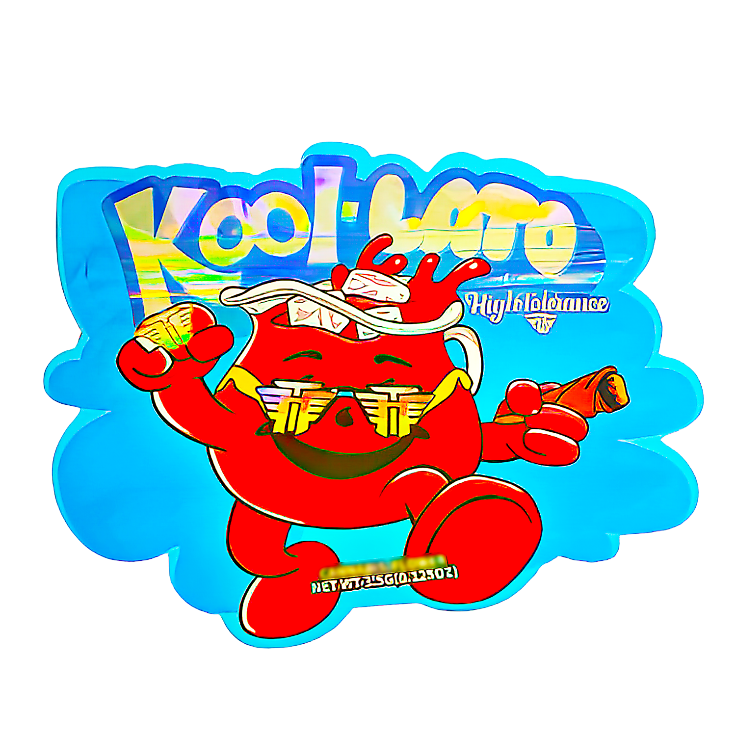 The Kool-Lato High Tolerance edition features striking artwork and vibrant color designed to stand out in your Mylar Bag Collections. These Custom 3.5g Bags deliver durable, airtight protection that keeps food products fresh while showcasing a high-end, glossy finish.