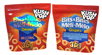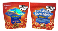 Buy Kush Pop Bits & Bites Meli Melo Crispers 3.5 gram die cut shaped mylar bags - smell proof, moisture proof, heat sealable, and child resistant for top-tier freshness and security. Sized for eighth ounce herb, edibles, or concentrates, and styled to make your packaging impossible to ignore. Compliant with herb packaging laws and vacuum seal ready - great for wholesale supply to dispensaries, cultivators, and retailers. Quick shipping available.