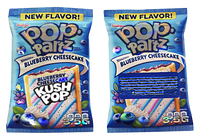 Buy Kush Pop Pop Tarts Blueberry Cheesecake 3.5 gram die cut shaped mylar bags - smell proof, moisture proof, heat sealable, and child resistant for top-tier freshness and security. A great fit for eighth ounce herb, edibles, or concentrates, with a custom die cut shape that sets your brand apart. Vacuum seal compatible and compliant with canabis packaging regulations - perfect for wholesale orders to dispensaries, growers, and smoke shops. Ships fast nationwide.