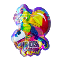 Choose Og Kush 3.5g die cut shaped mylar bags - built for smell proof storage, moisture lock, heat sealing, and child safety compliance. Perfect for eighth ounce herb flower, edibles, or concentrates, these unique shaped bags help your brand stand out on dispensary shelves. Vacuum seal compatible and compliant with canabis packaging regulations - perfect for wholesale orders to dispensaries, growers, and smoke shops. Ships fast nationwide.