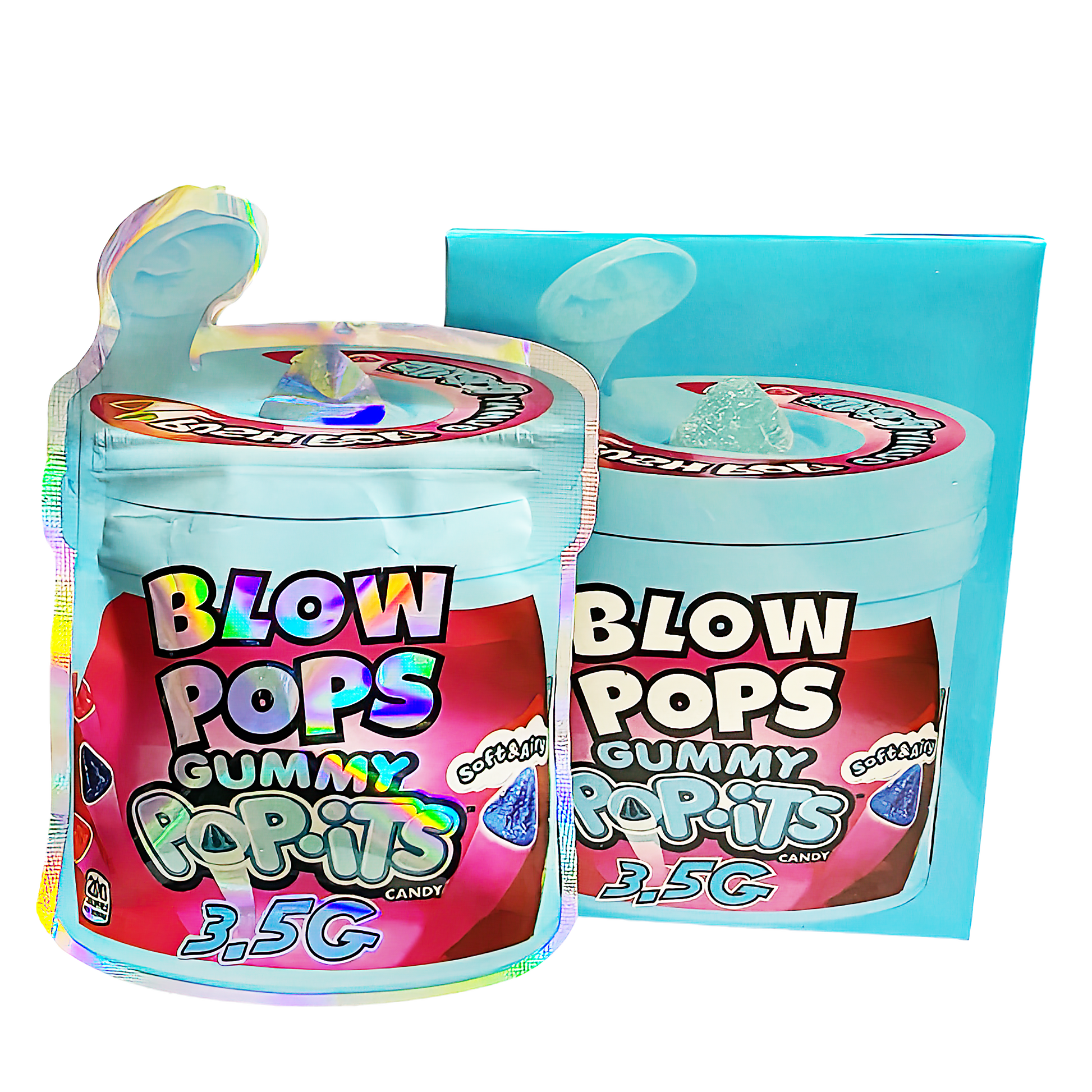 The Blow Pops Gummy Popits edition features a clean, vibrant design that brings instant recognition to your packaging lineup. Each set includes a 3.5g shaped mylar Storage Bag and matching box for Durable presentation. These collectible packaging sets combine high-end protection with bold color and display-ready appeal.