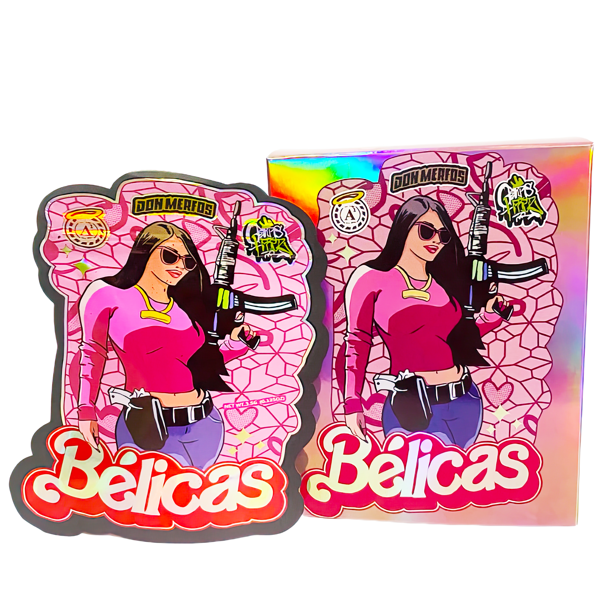 Upgrade your packaging lineup with the 3.5g Shaped Mylar Storage Bag with Box Don Merfos Belicas, a Durable-quality smell proof, resealable, and heat sealable combo set designed for freshness and standout appeal. Built from durable, multi-layer barrier film, each shaped Storage Bag and matching display box protect contents from air, moisture, and odor - perfect for brands focused on presentation and long-lasting quality.