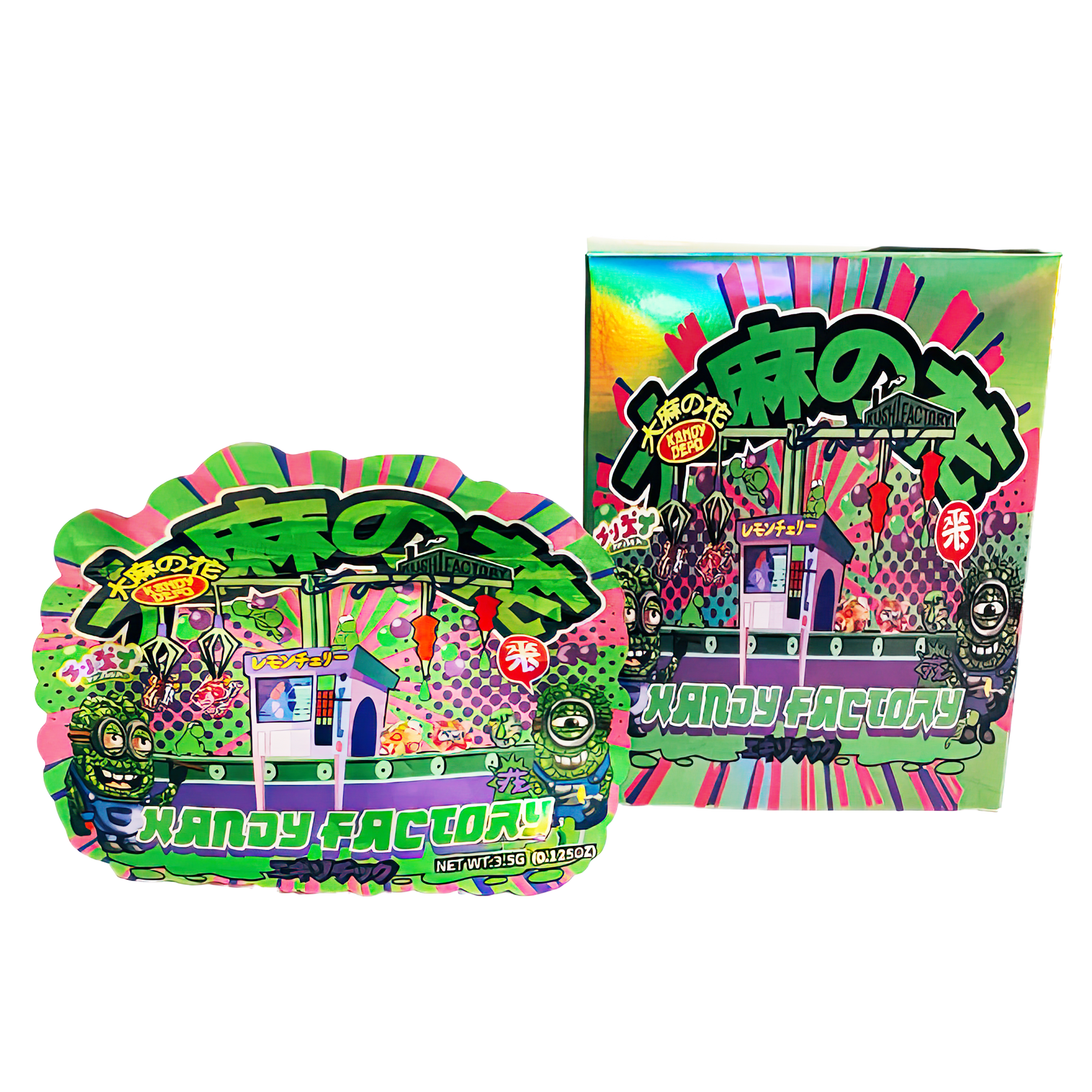 The Factory edition features a clean, vibrant design that brings instant recognition to your packaging lineup. Each set includes a 3.5g shaped mylar Storage Bag and matching box for Durable presentation. These collectible packaging sets combine high-end protection with bold color and display-ready appeal.