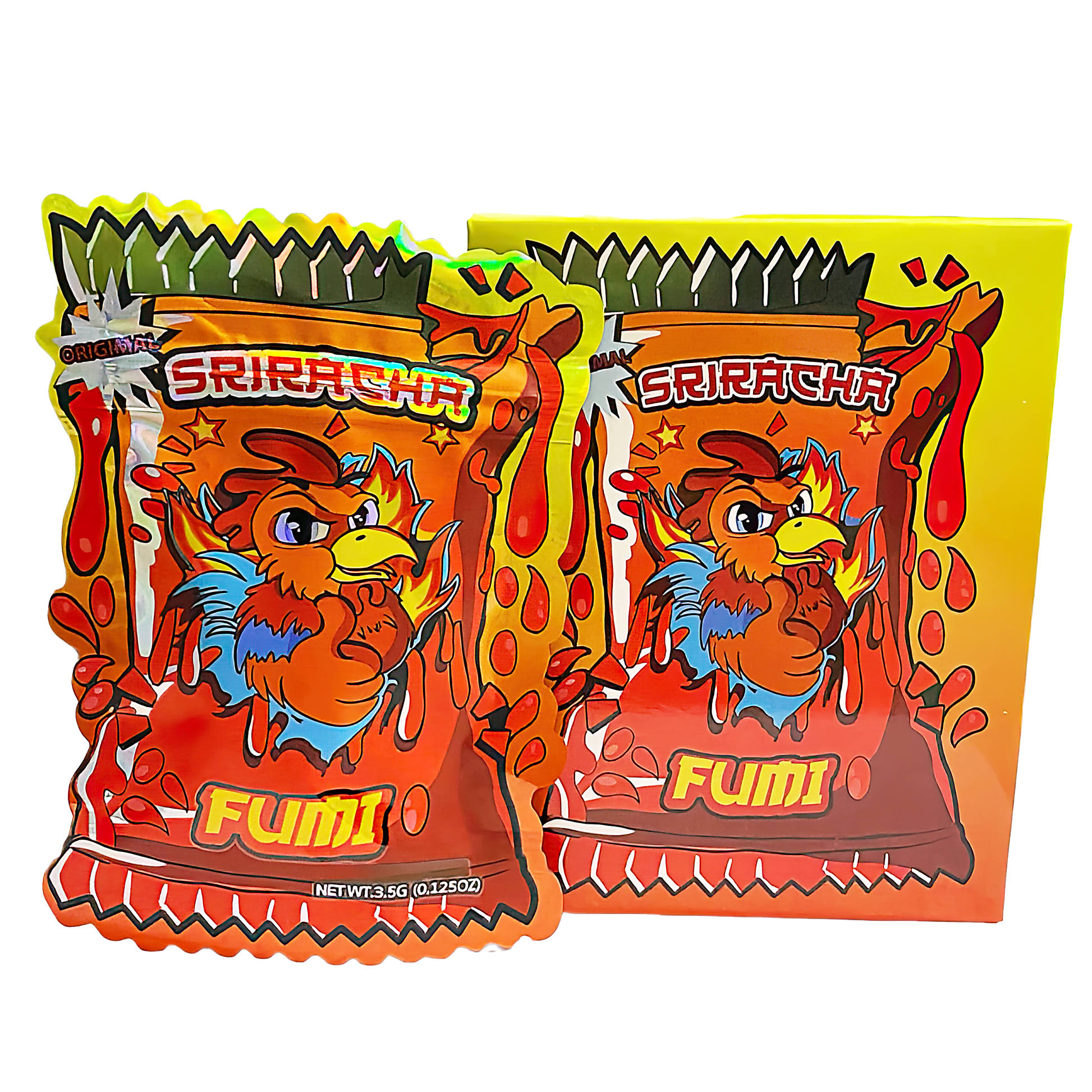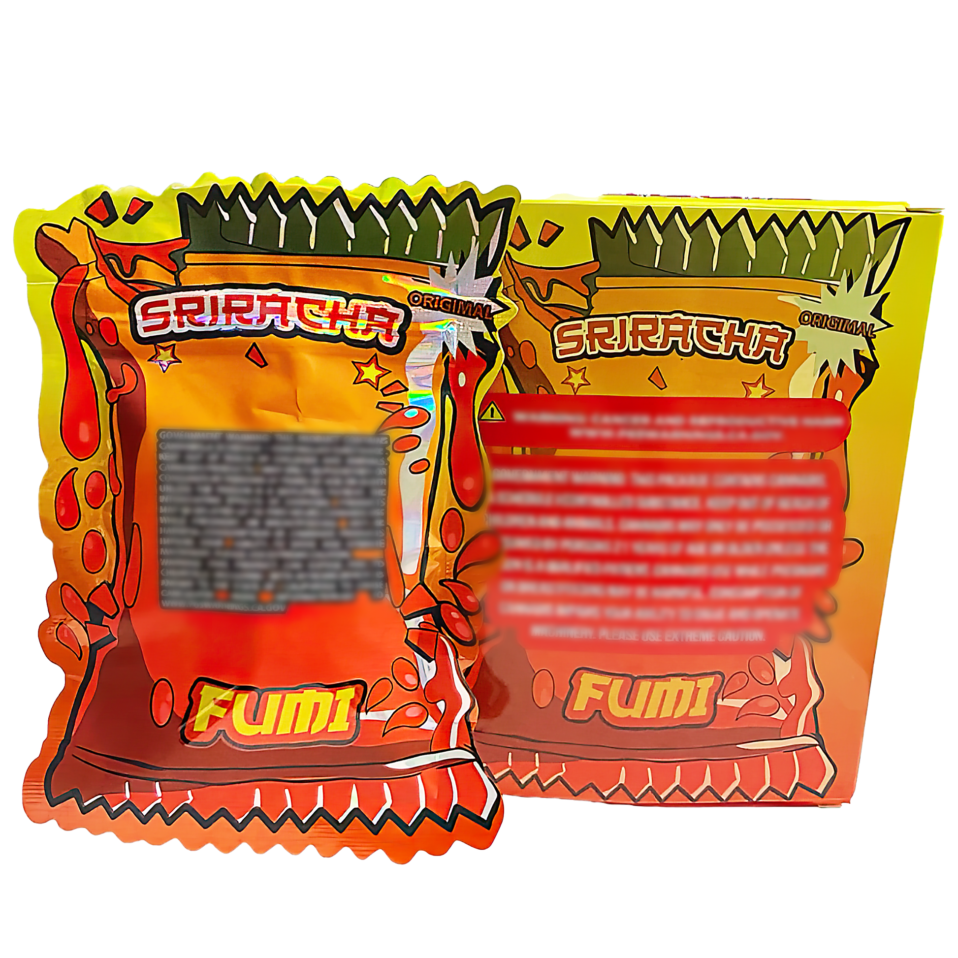 The Sriracha Fumi edition features a clean, vibrant design that brings instant recognition to your packaging lineup. Each set includes a 3.5g shaped mylar Storage Bag and matching box for Durable presentation. These collectible packaging sets combine high-end protection with bold color and display-ready appeal.