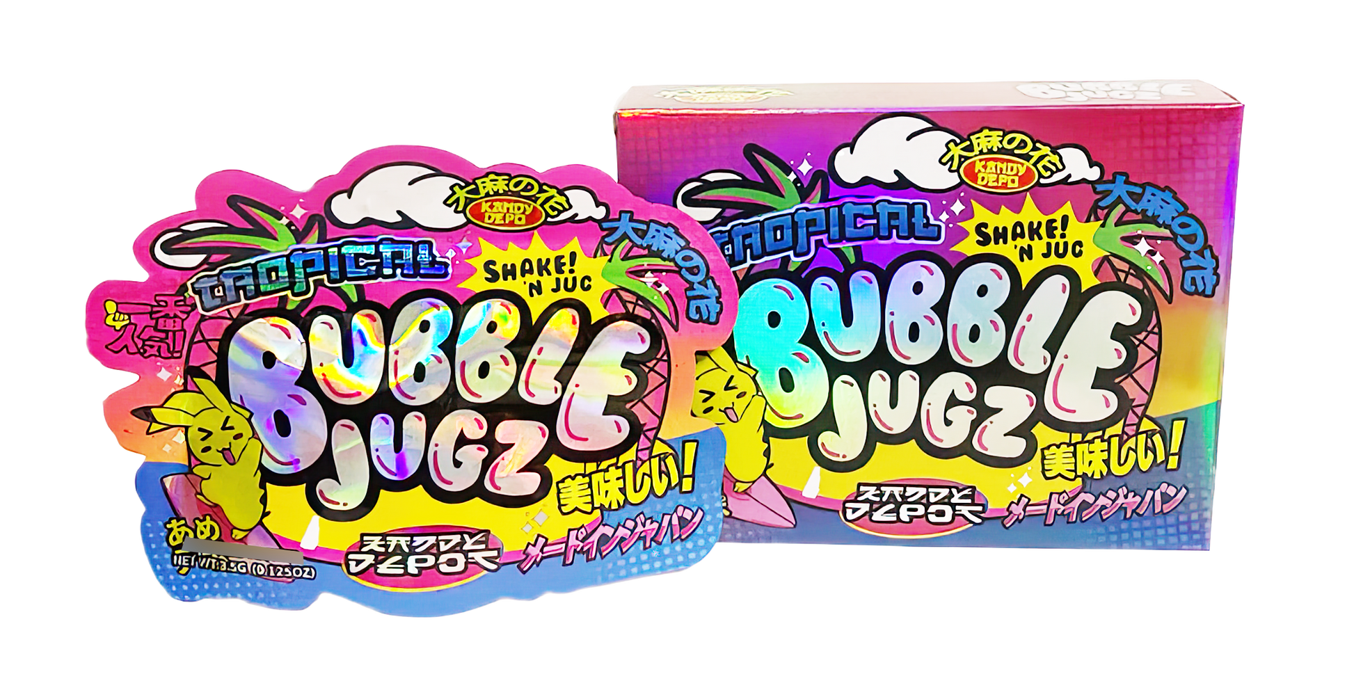 The Tropical Bubble Jugz edition features a clean, vibrant design that brings instant recognition to your packaging lineup. Each set includes a 3.5g shaped mylar Storage Bag and matching box for Durable presentation. These collectible packaging sets combine high-end protection with bold color and display-ready appeal.