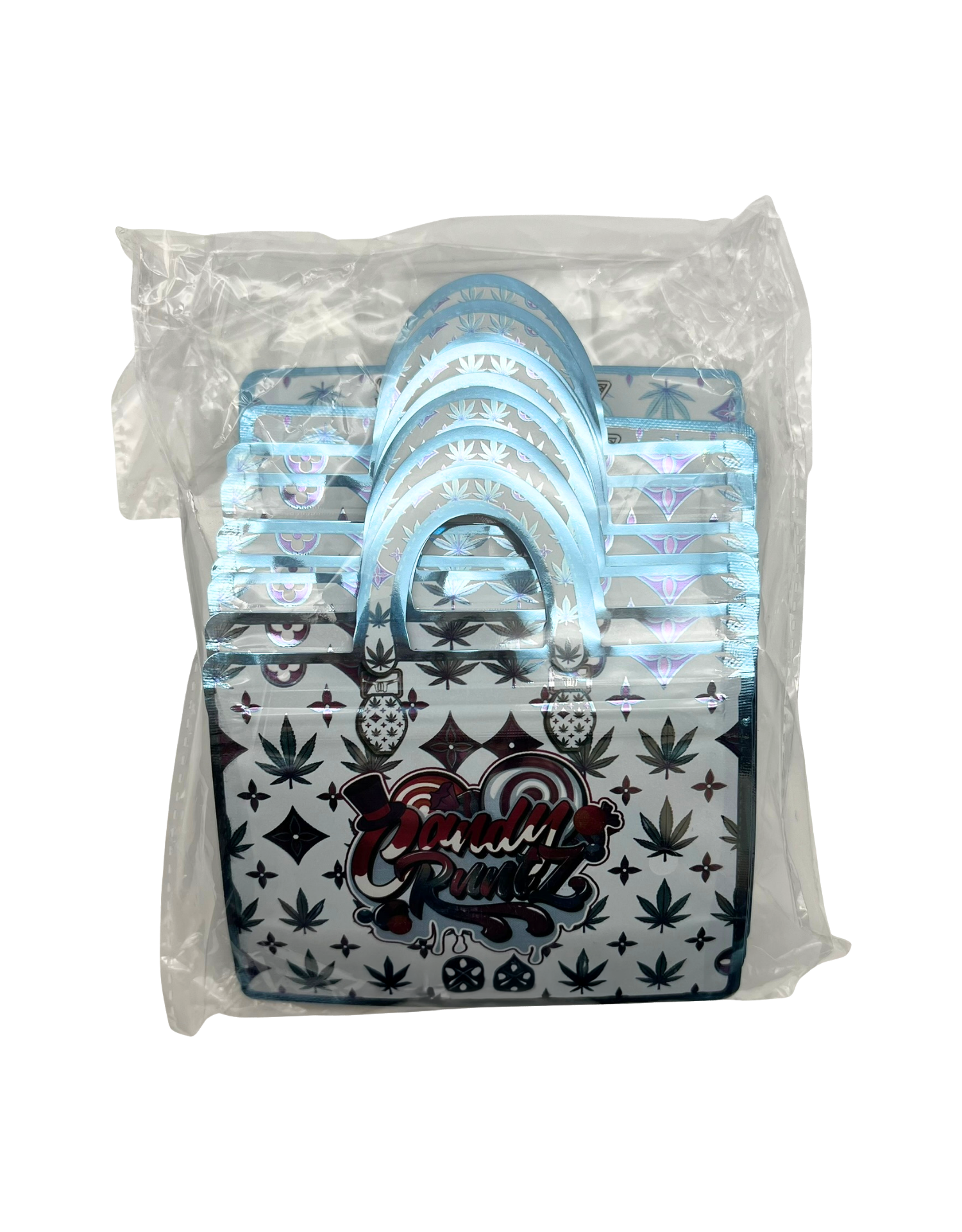 Upgrade your retail packaging with these Handbag-Style Mylar Bags, designed for brands that want eye-catching presentation and reliable product protection. Each pouch is crafted from durable, multi-layer high-barrier film to help maintain freshness, quality, and visual appeal during storage, or display.