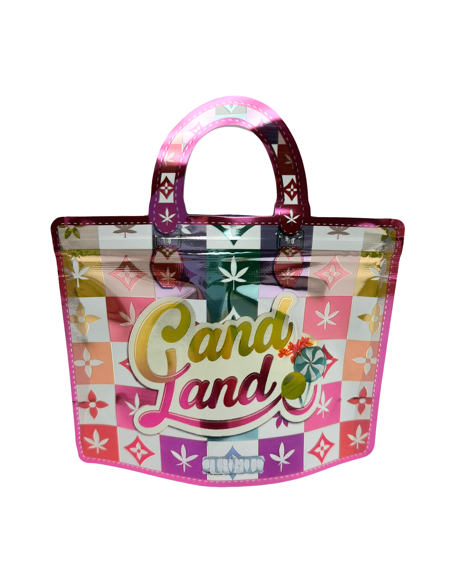 These pouches are crafted from durable multi-layer foil material and feature a resealable zip closure with optional heat-seal compatibility for flexible packaging applications. The structured handbag-inspired silhouette provides a distinctive retail-ready presentation while maintaining a clean and professional appearance.
